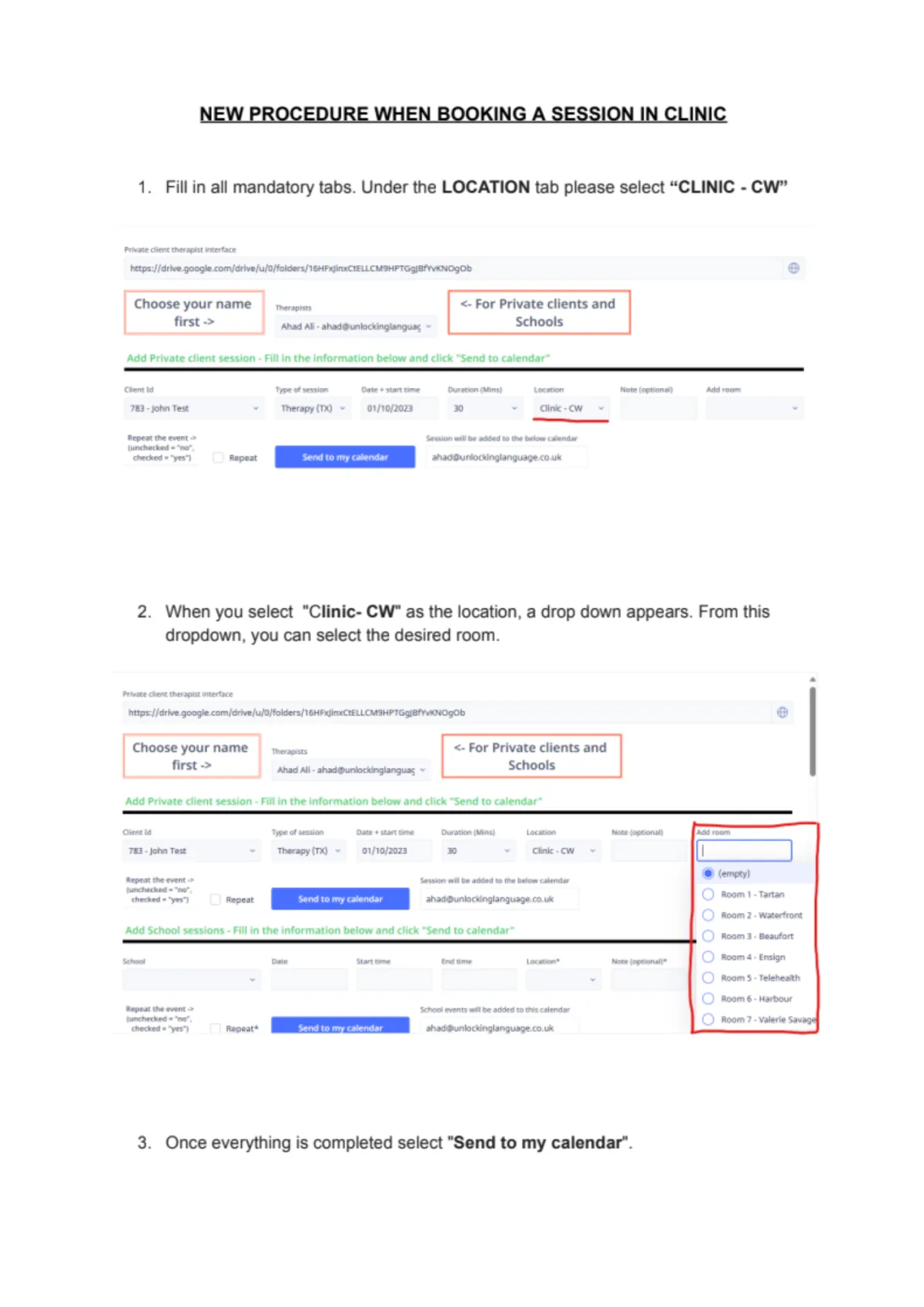 New Procedure When Booking A Session in Clinic